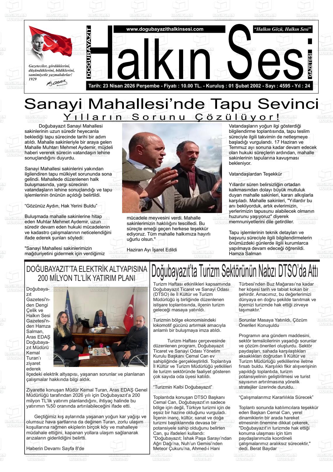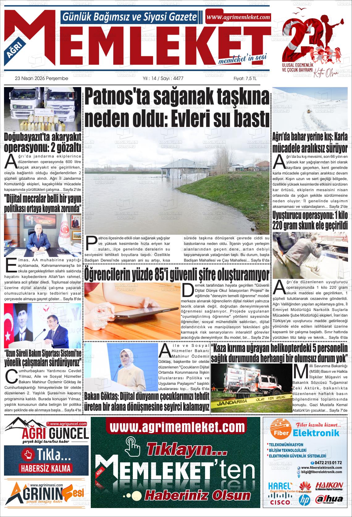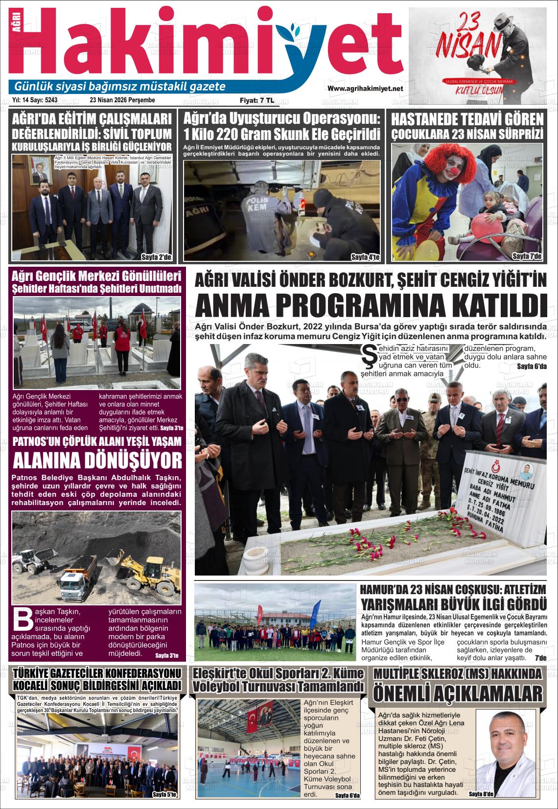 Ağrı Yerel Gazeteleri 23 Nisan 2026, Perşembe Günü Manşeti