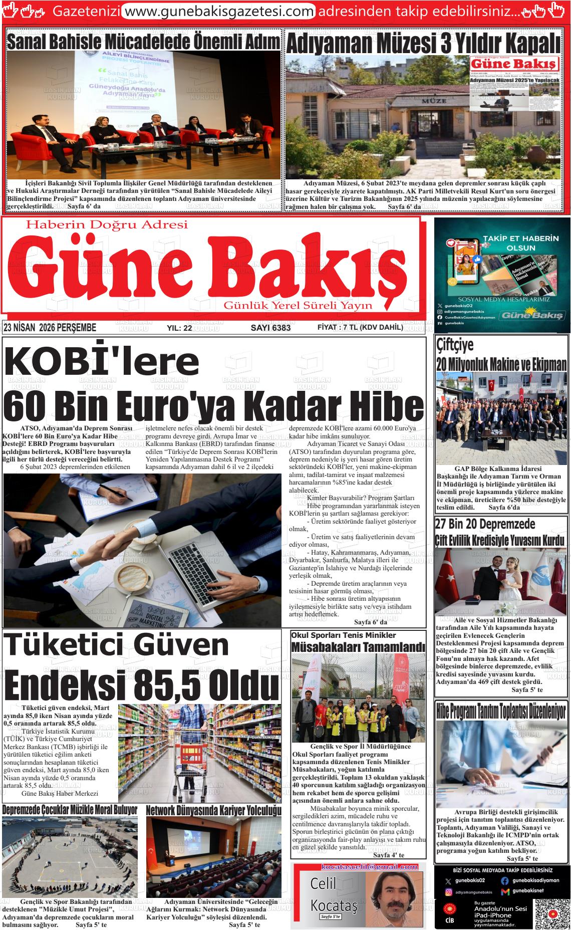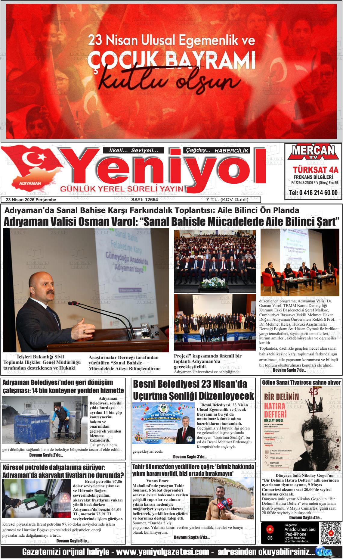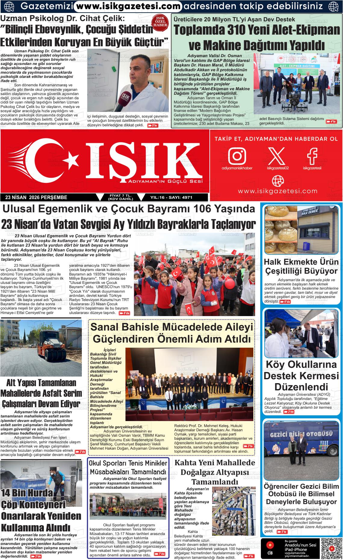 Adıyaman Yerel Gazeteleri 23 Nisan 2026, Perşembe Günü Manşeti
