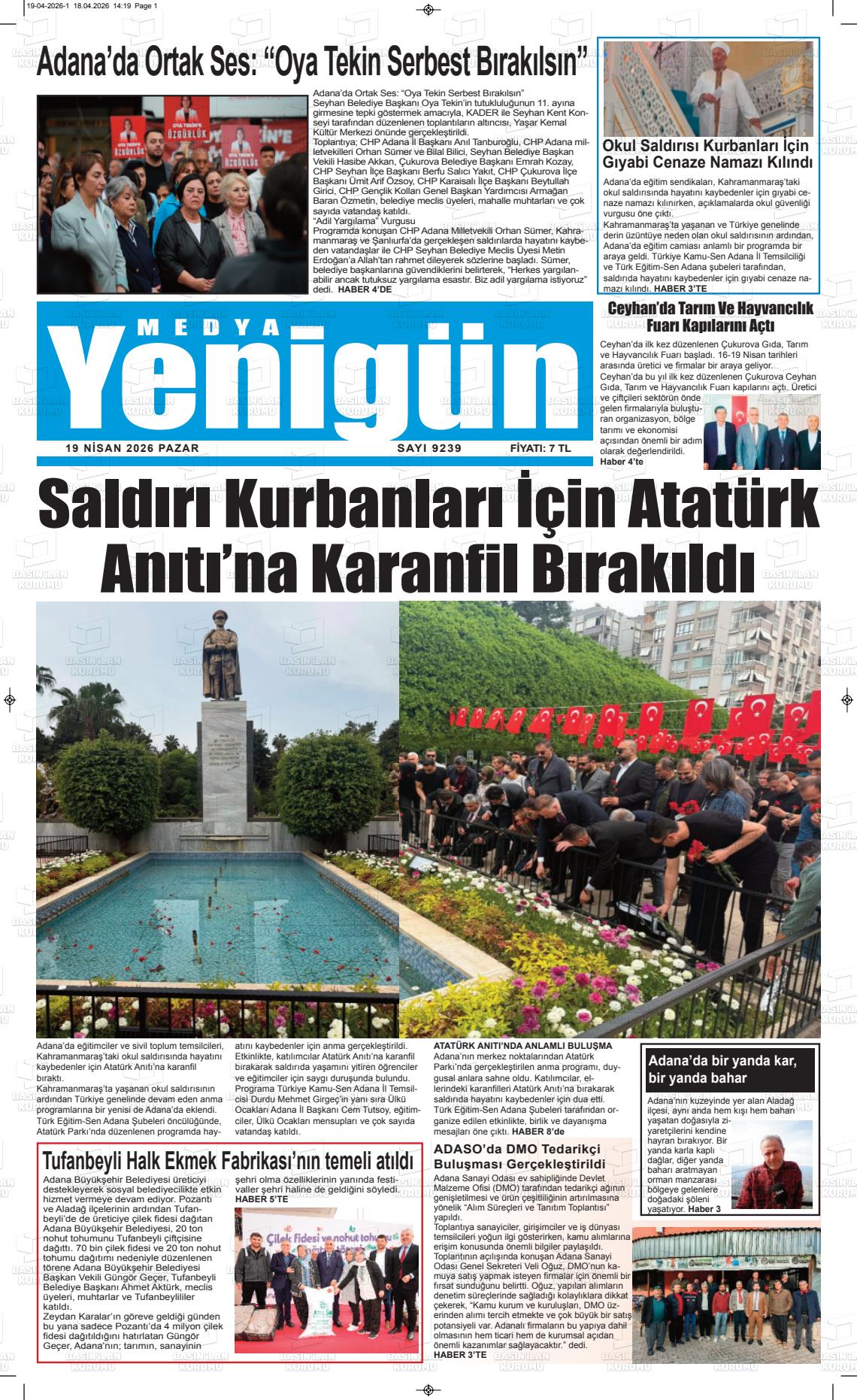 Aksaray Yerel Gazeteleri 19 Nisan 2026, Pazar Günü Manşeti