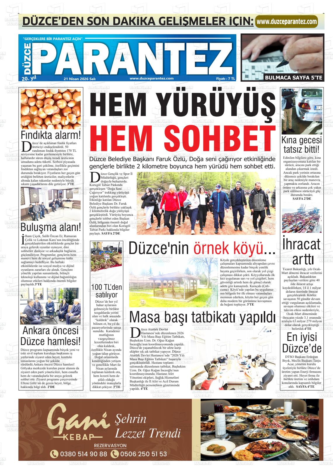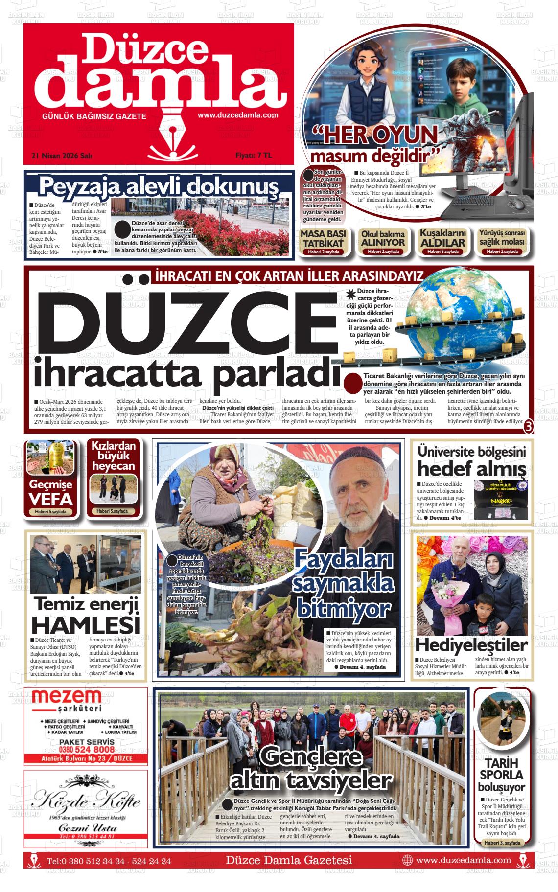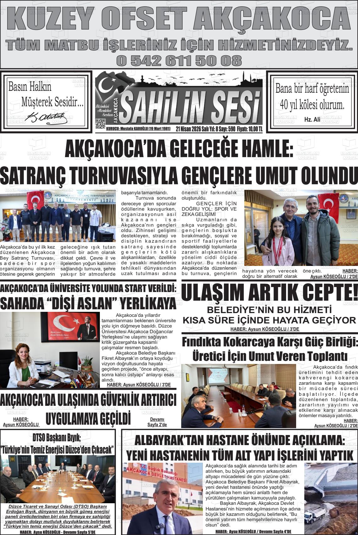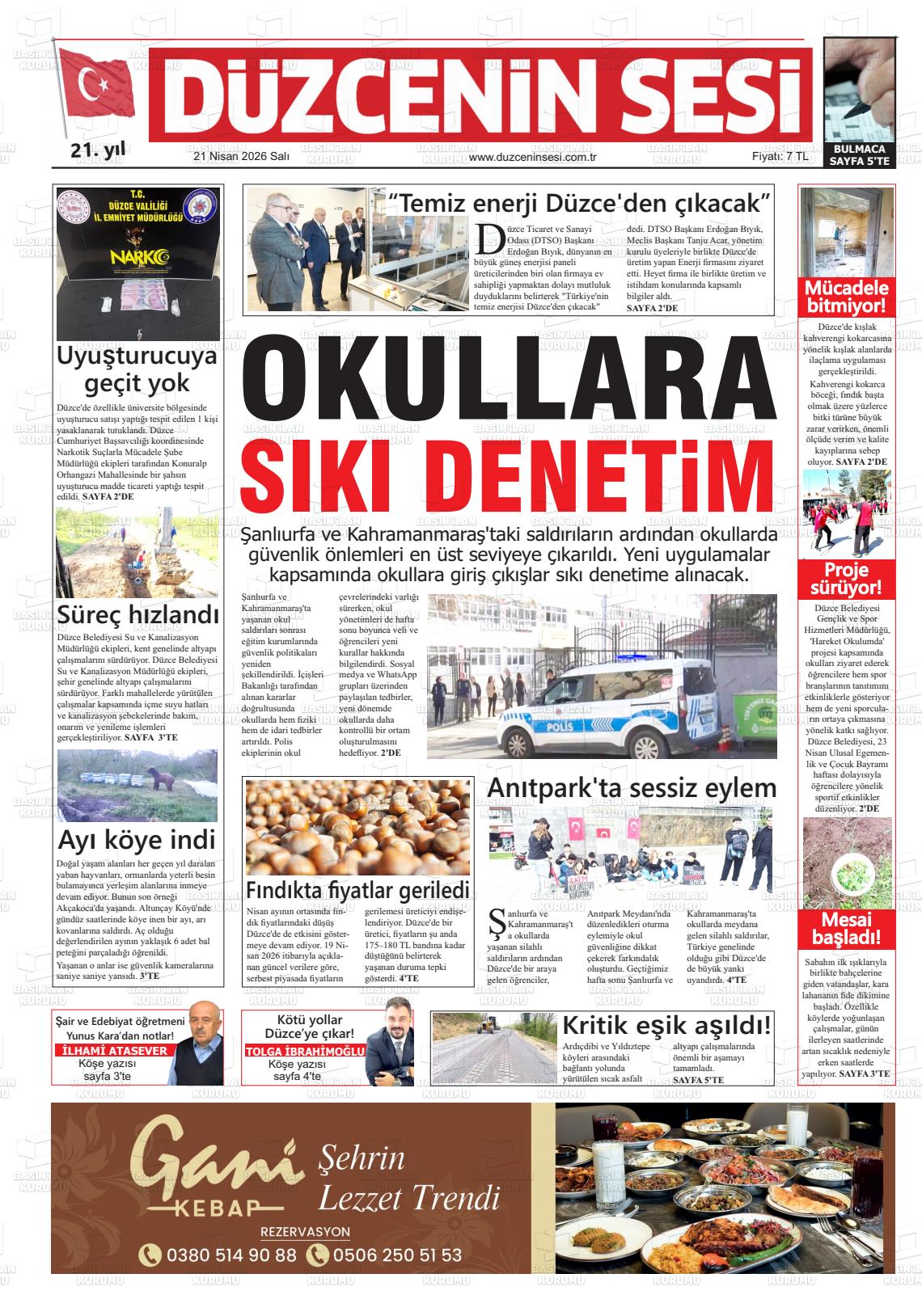 Düzce Yerel Gazeteleri 21 Nisan 2026, Salı Günü Manşeti