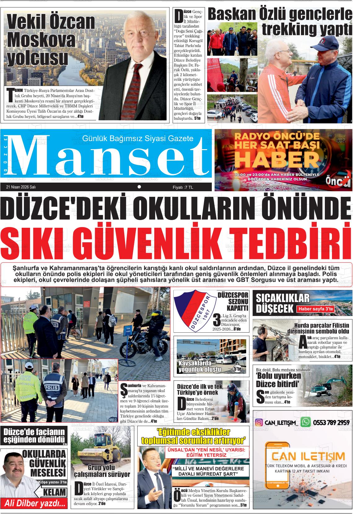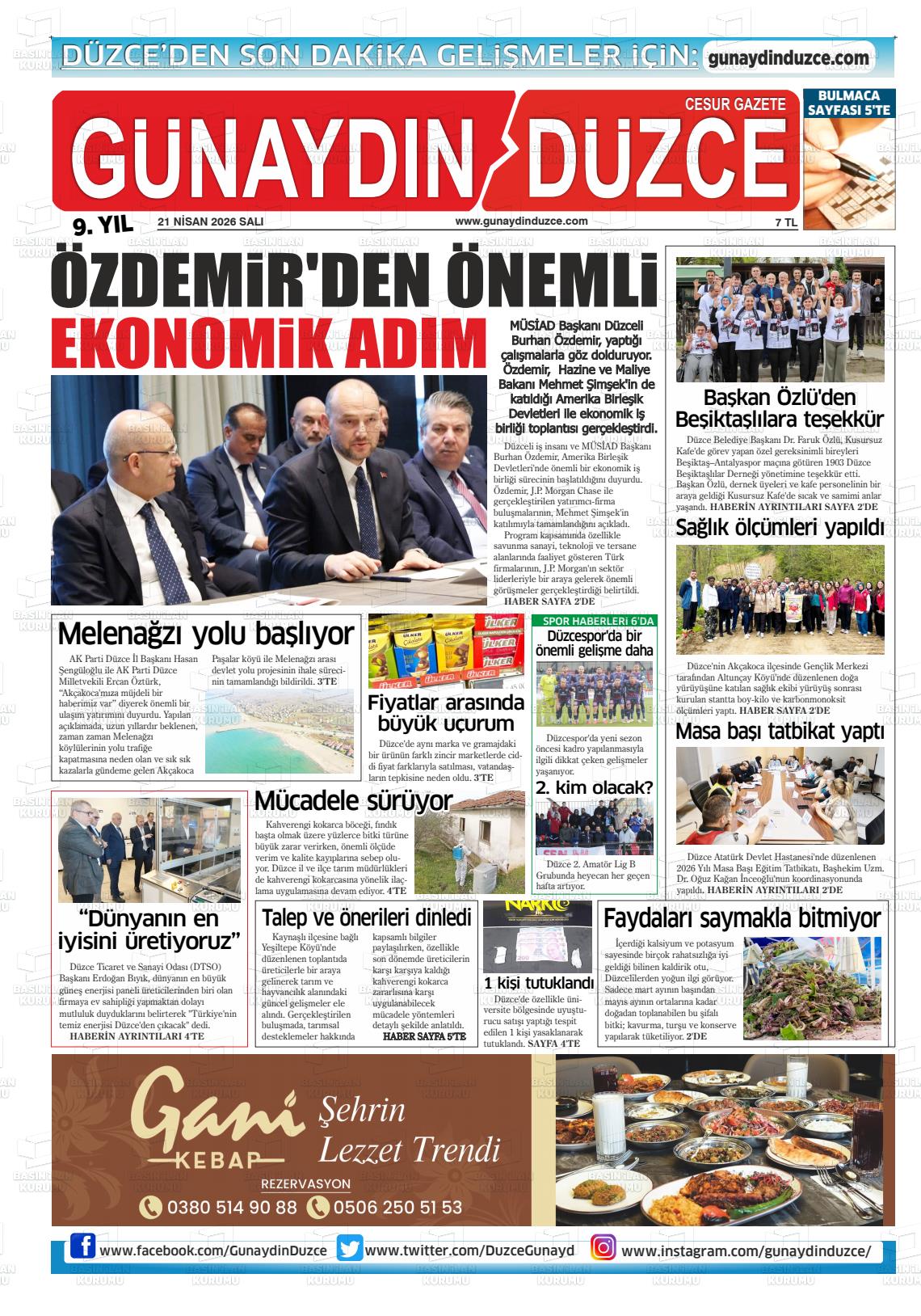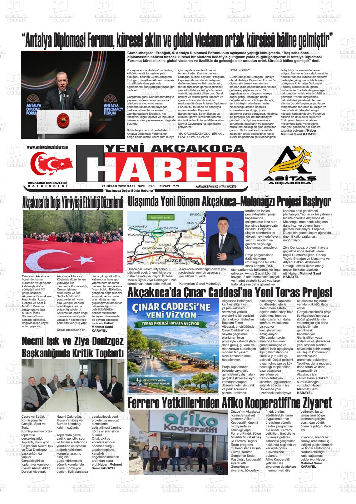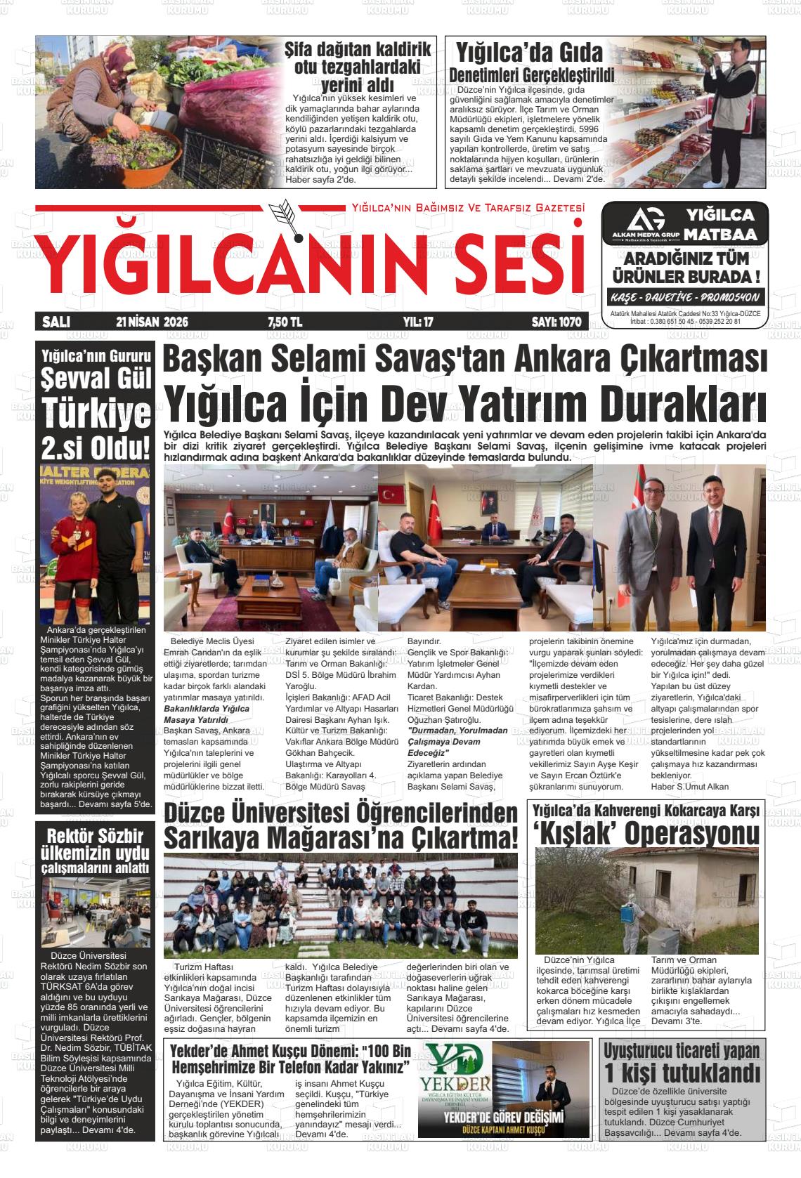 Düzce Yerel Gazeteleri 21 Nisan 2026, Salı Günü Manşeti