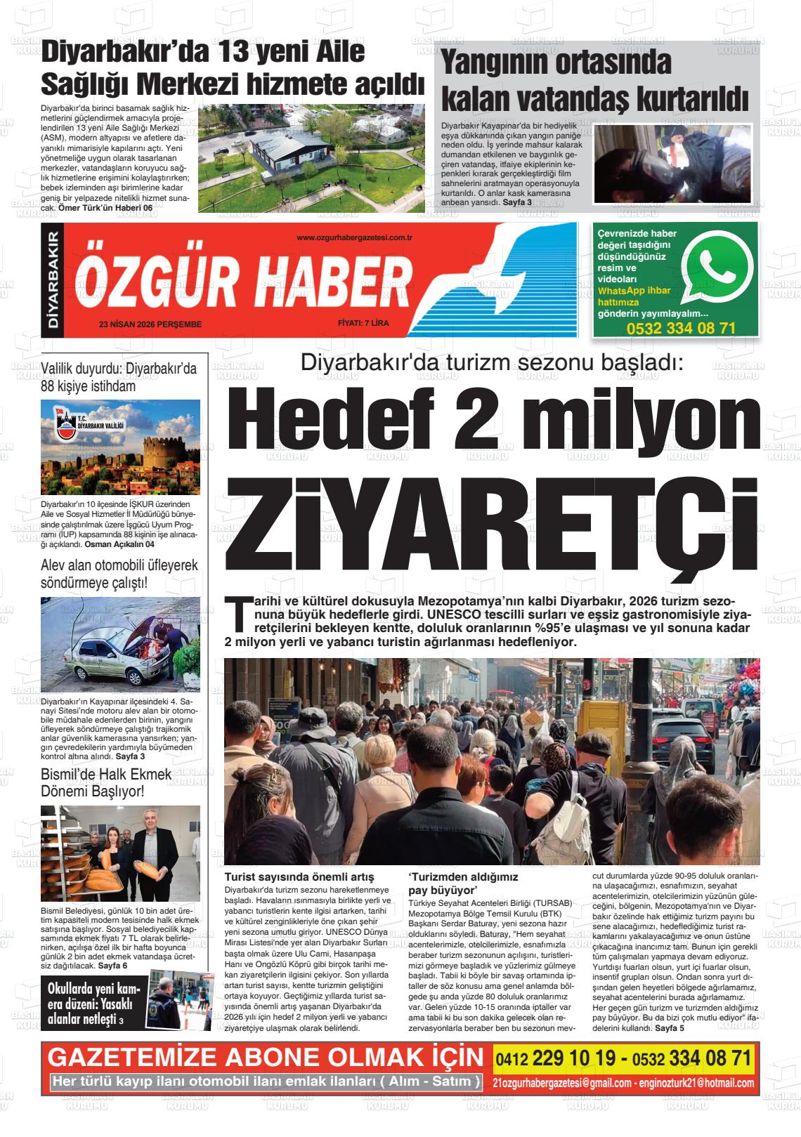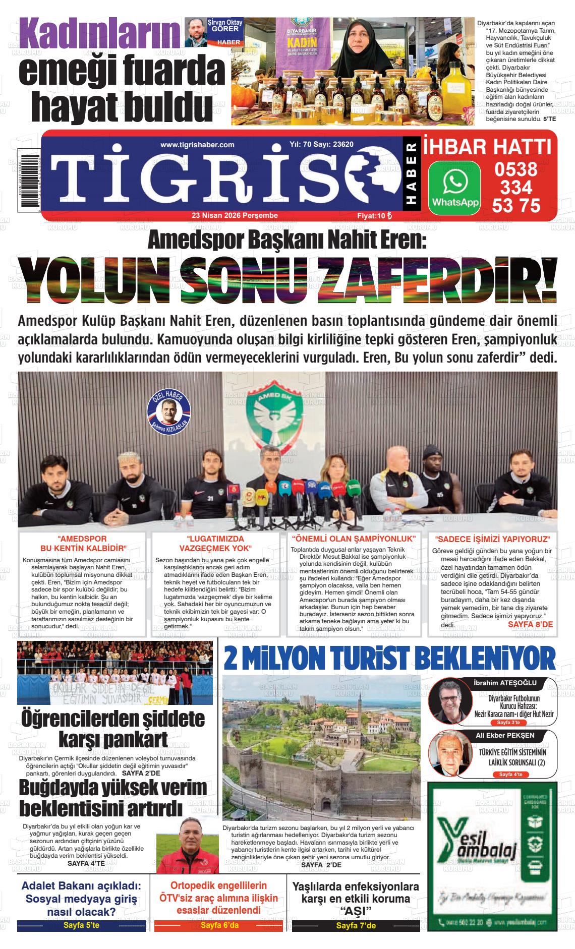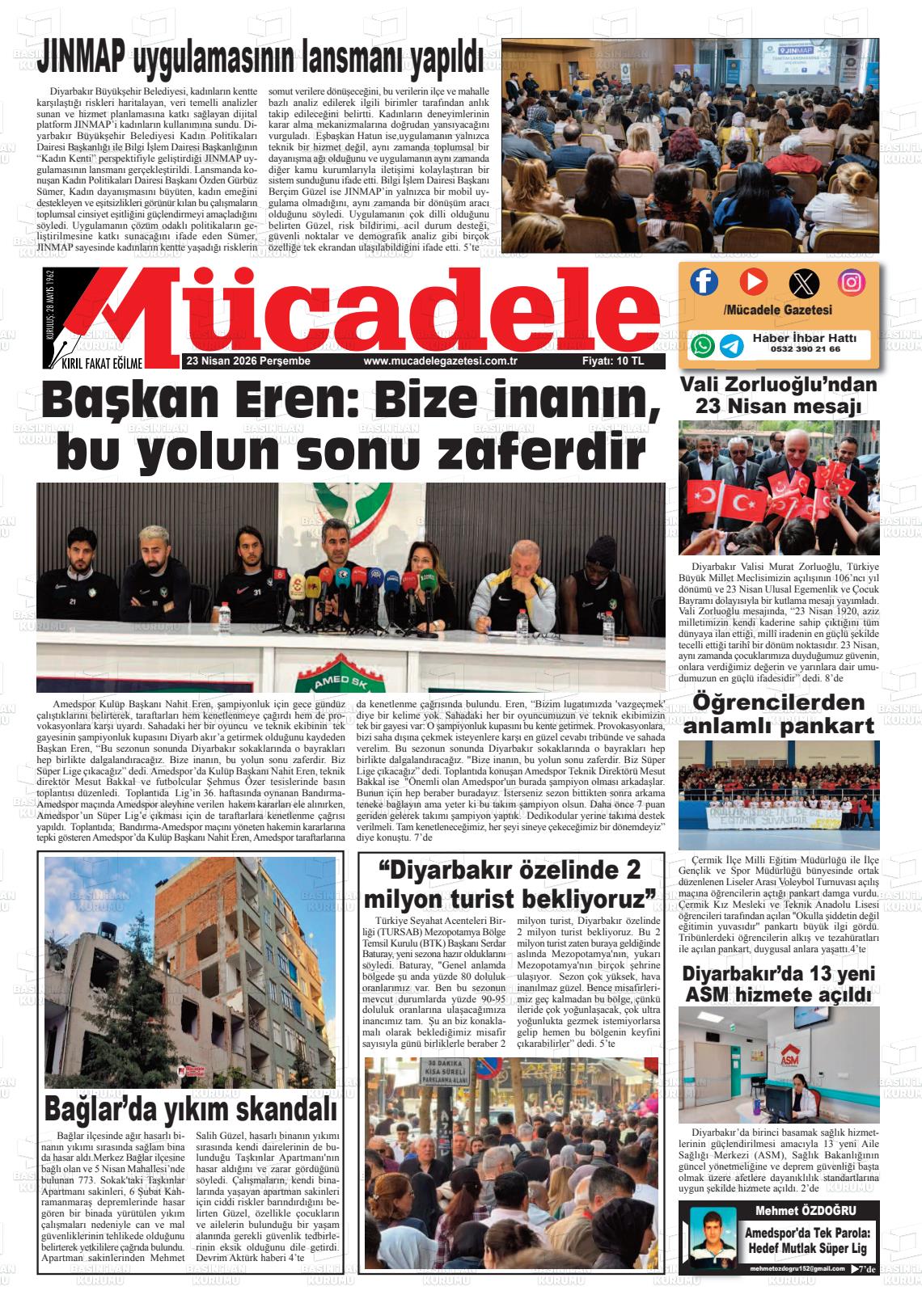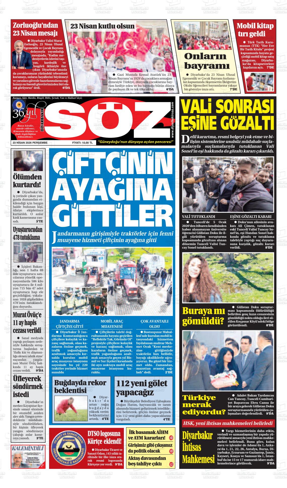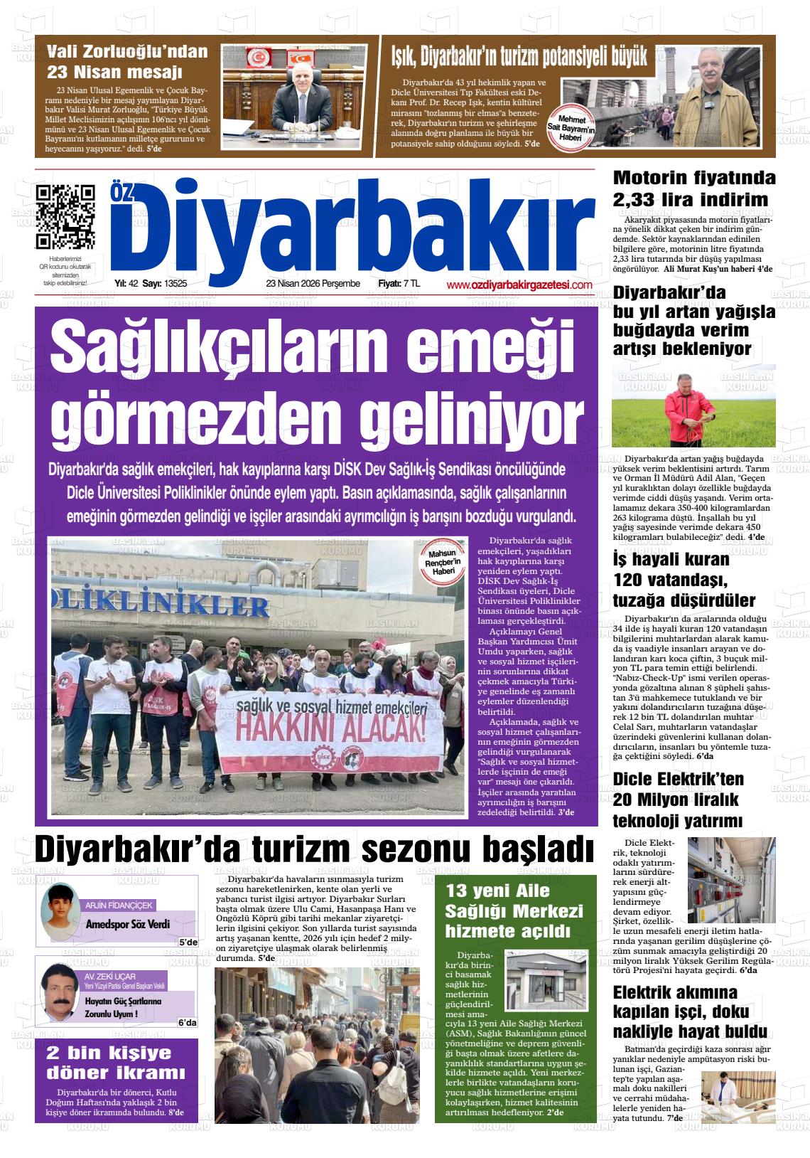 Dİyarbakır Yerel Gazeteleri 23 Nisan 2026, Perşembe Günü Manşeti