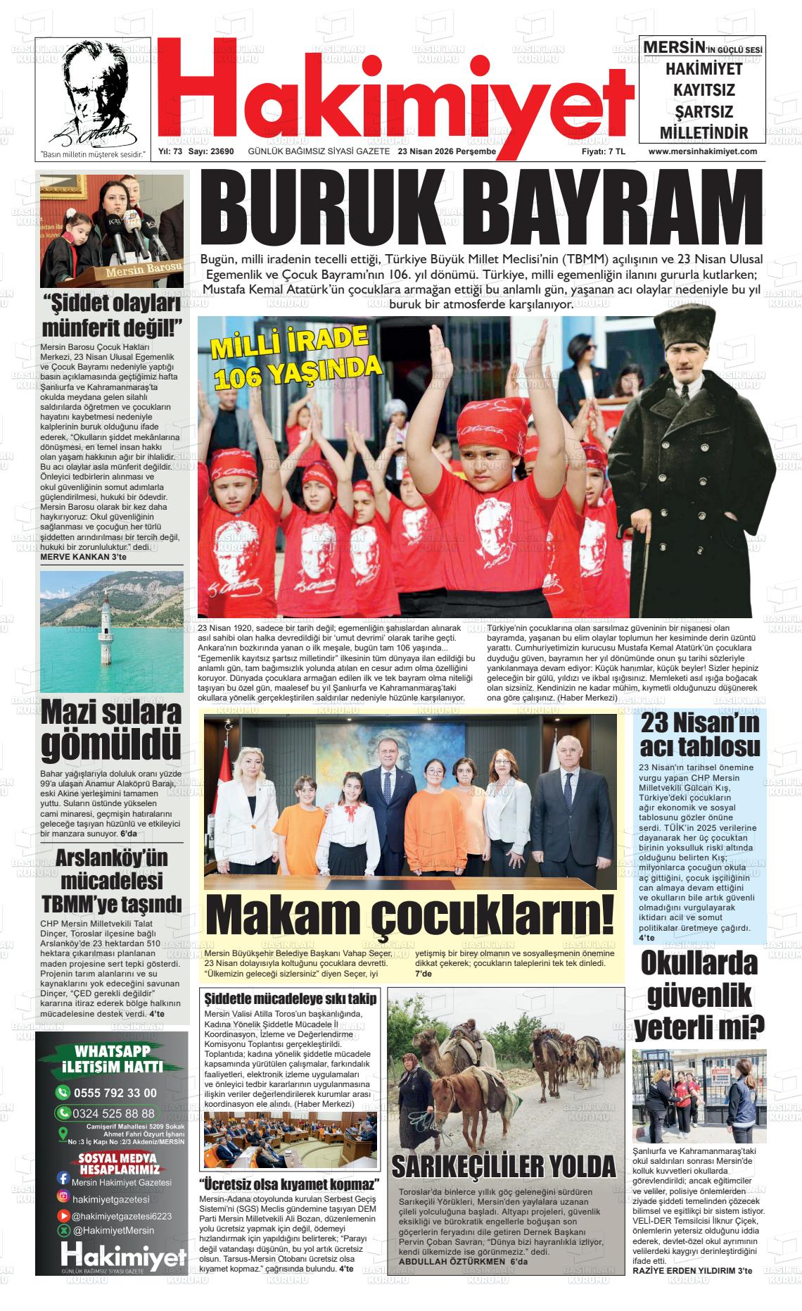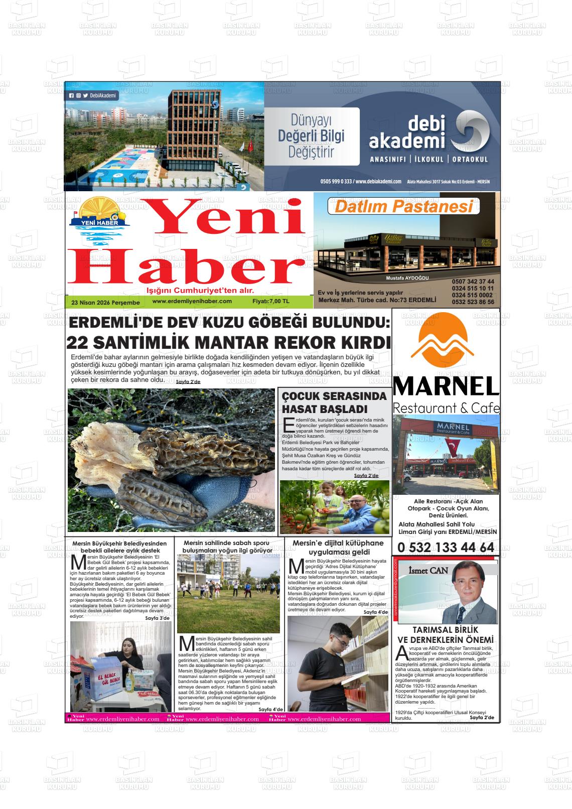 Mersİn Yerel Gazeteleri 23 Nisan 2026, Perşembe Günü Manşeti
