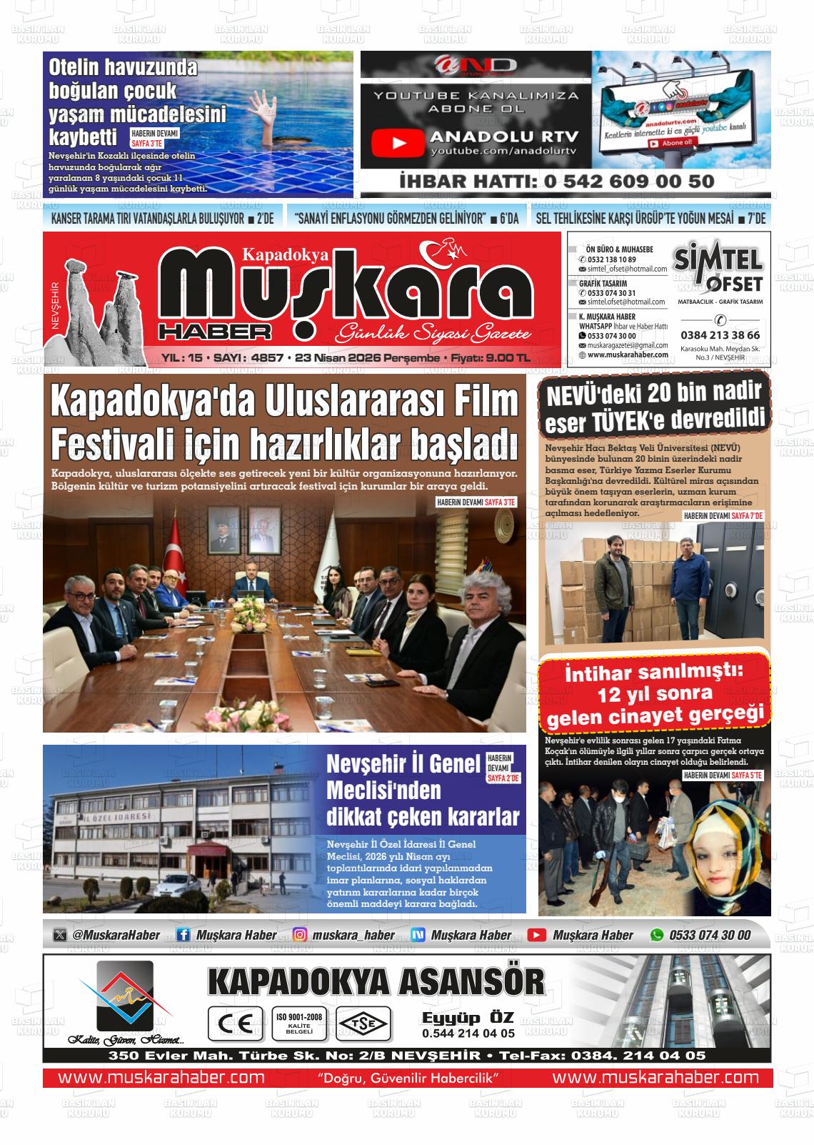 Nevşehİr Yerel Gazeteleri 23 Nisan 2026, Perşembe Günü Manşeti